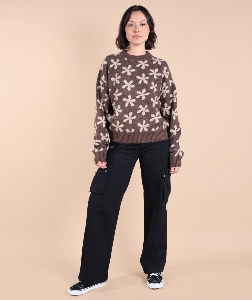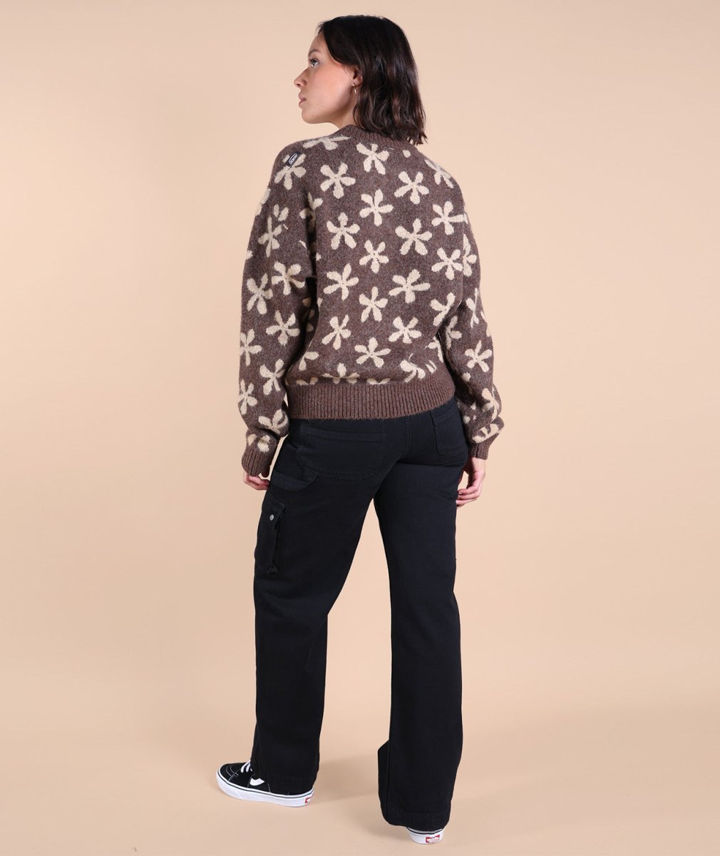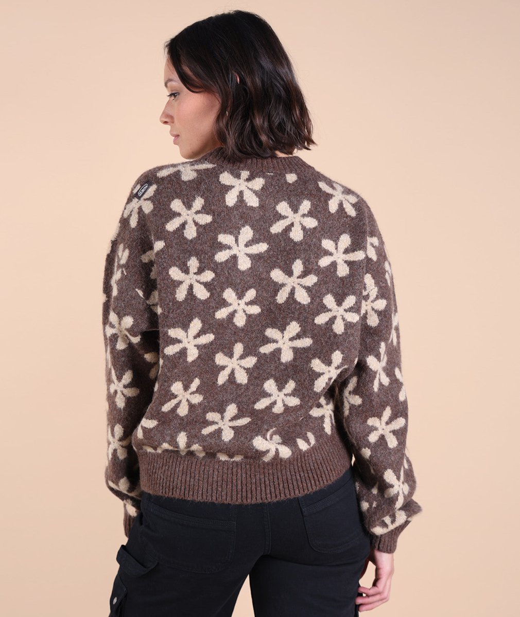 Sa maille jacquard fleurs apporte une touche raffinée, tandis que sa texture chaude et moelleuse enveloppe délicatement. Grâce à sa coupe confort et son col rond intemporel, il se porte facilement au quotidien, du bureau aux soirées cocooning !