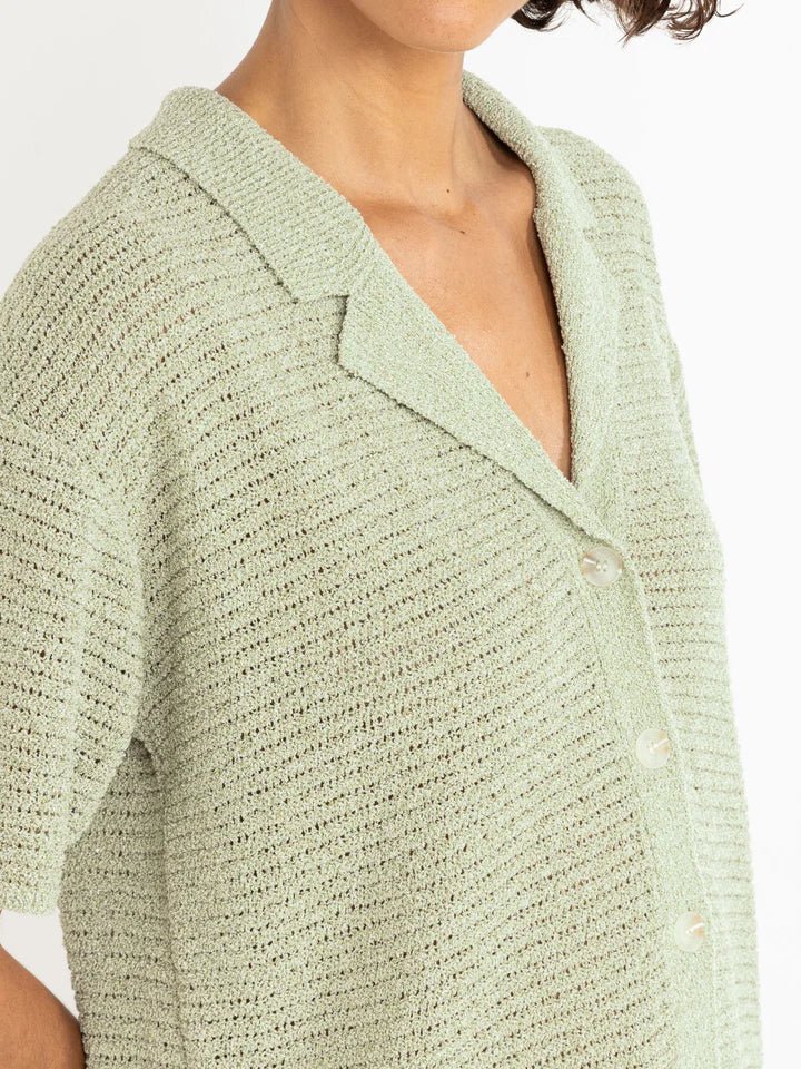 La Abby Knit Shirt Dress en coloris Fern incarne l’équilibre parfait entre confort et élégance décontractée. Confectionnée dans un mélange doux de polyester (60 %) et acrylique (40 %), elle présente une coupe fluide idéale pour les journées ensoleillées. Ses manches courtes, son col cubain ouvert et sa patte de boutonnage sur le devant offrent un look moderne et facile à porter, rehaussé par des bords côtelés aux poignets et à l’ourlet.