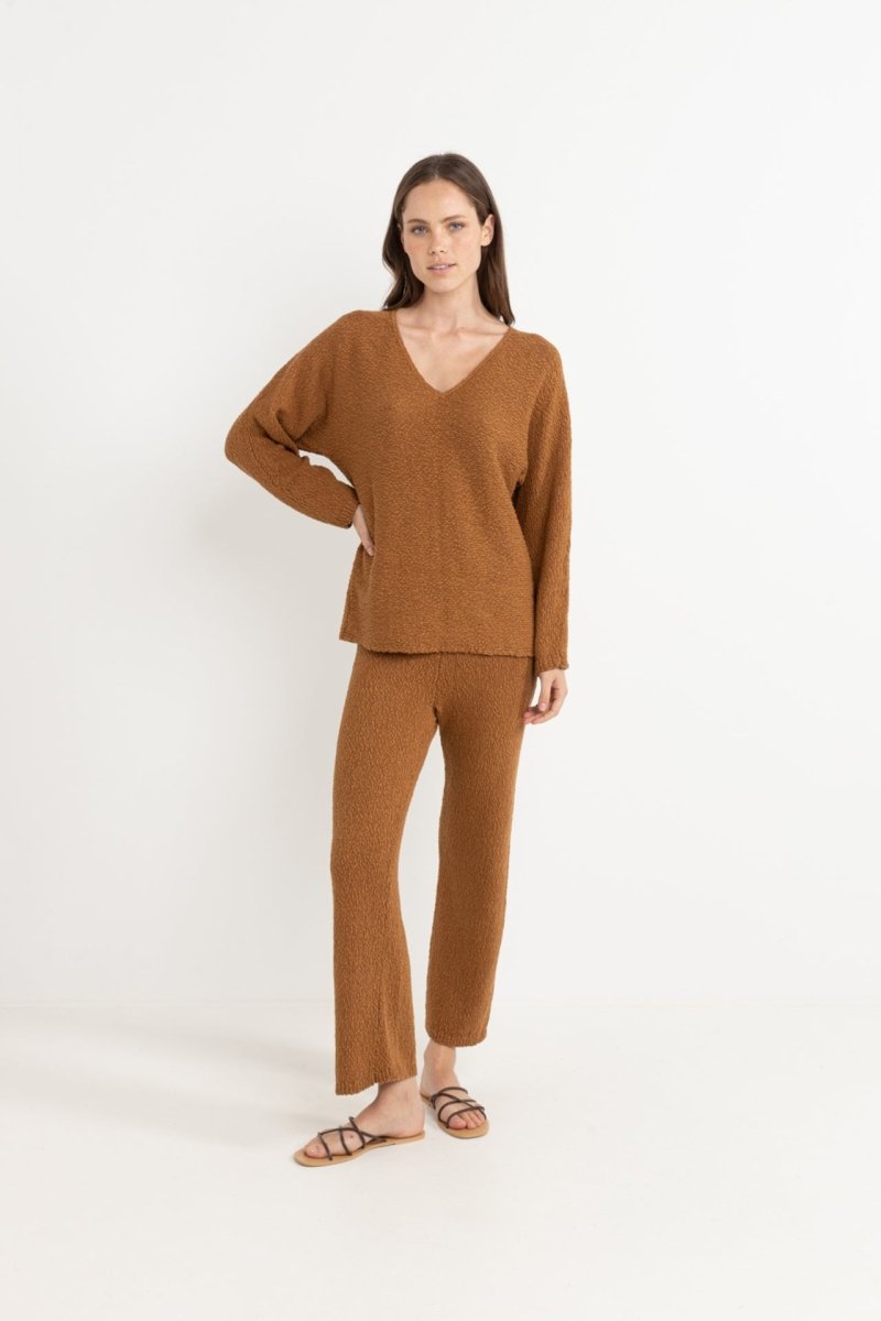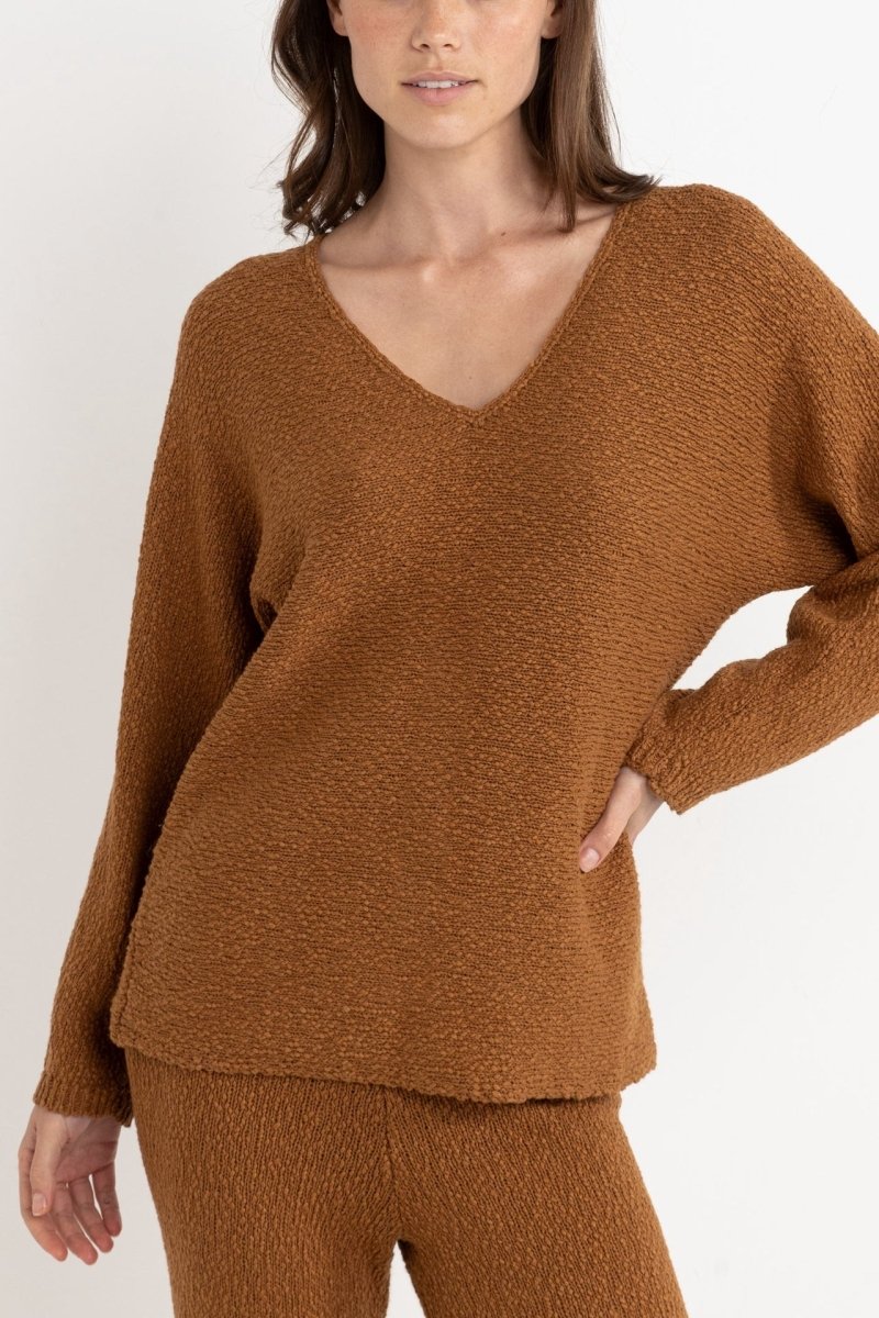 Le Adele Oversized Long Sleeve Knit en coloris Caramel allie confort et élégance décontractée. Confectionné en 100 % coton, ce pull doux et respirant présente une coupe oversize et un décolleté en V arrondi, parfaits pour les journées plus fraîches. Ses tons chauds et sa texture naturelle apportent une touche chaleureuse à vos tenues automnales ou hivernales.