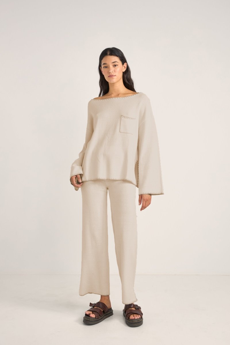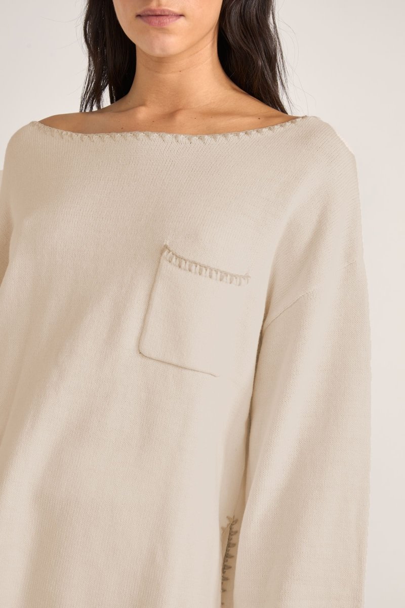 Le Bondi Knit Jumper en coloris Natural incarne le confort côtier avec une touche décontractée. Confectionné dans un mélange doux de coton et d’acrylique, ce pull oversize présente une poche poitrine pratique et des fentes latérales pour une allure fluide et contemporaine. Parfait pour les journées fraîches en bord de mer ou les moments de détente, il allie style et confort sans effort.