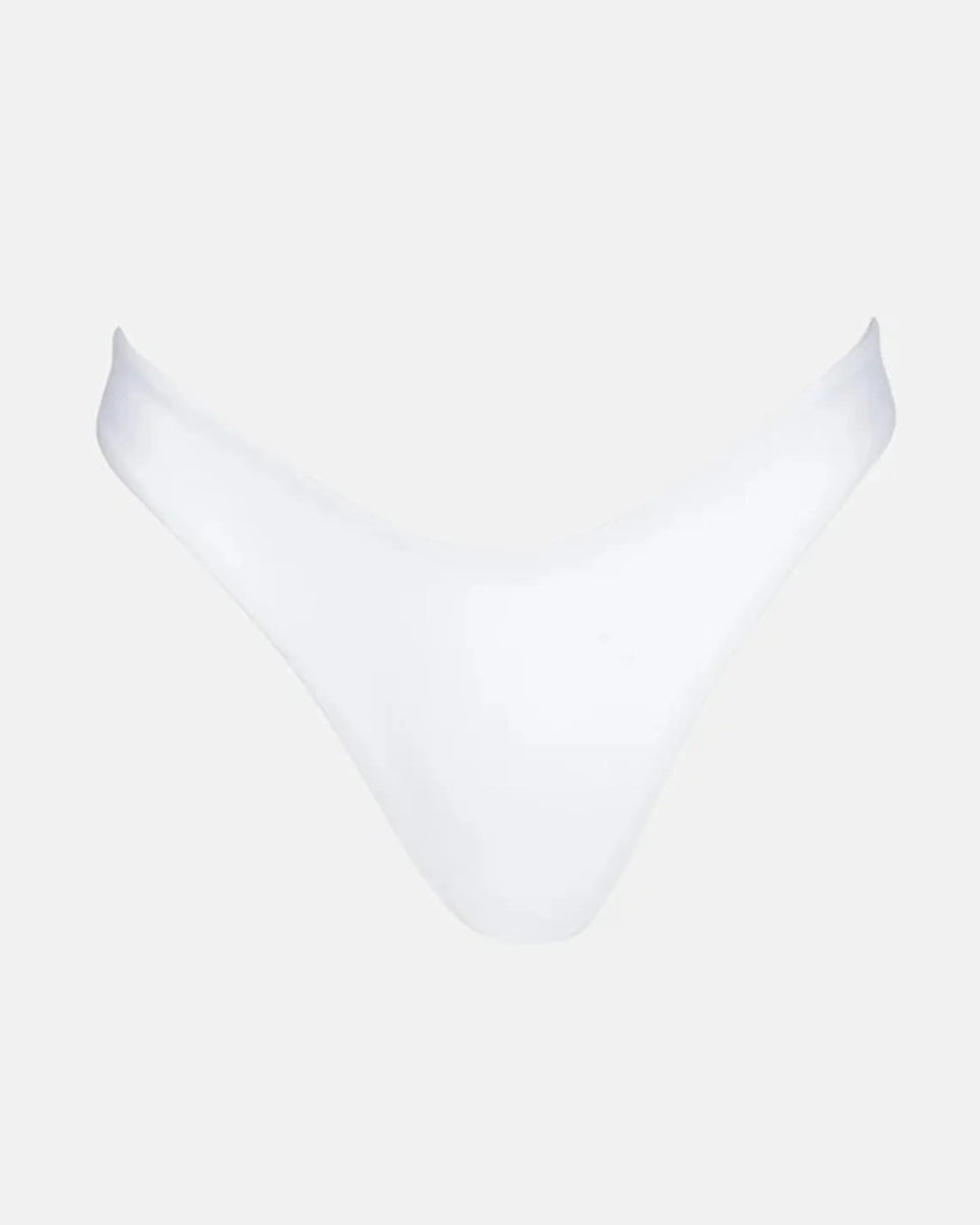 Bas de maillot Classic Hi Cut en White, taille haute flatteuse, coupe brève, finition soignée et logo métallique.