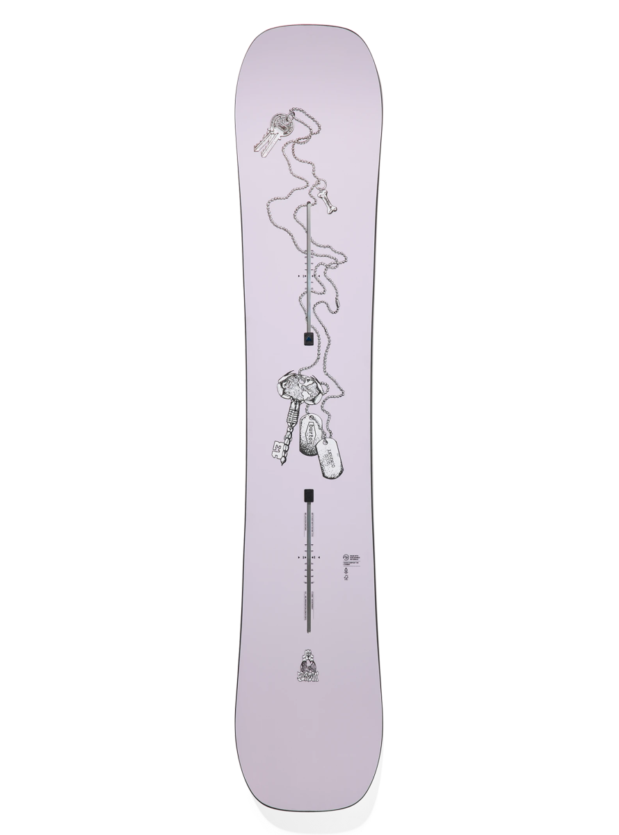 Mit ihrem symmetrischen Twin-Shape und ihrem traditionellen Camber bietet sie Präzision, Pop und Stabilität, um im Park voranzukommen (10/10), während sie gleichzeitig eine echte Vielseitigkeit im All-Mountain-Bereich bewahrt (7/10). Weniger komfortabel im Powder (3/10), bleibt sie dennoch eine sichere Wahl, um Tricks, Rails und Kickers zu meistern, mit perfekter Kontrolle sowohl in Regular als auch in Switch.