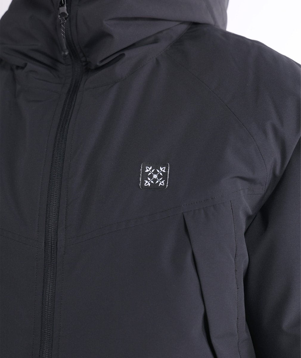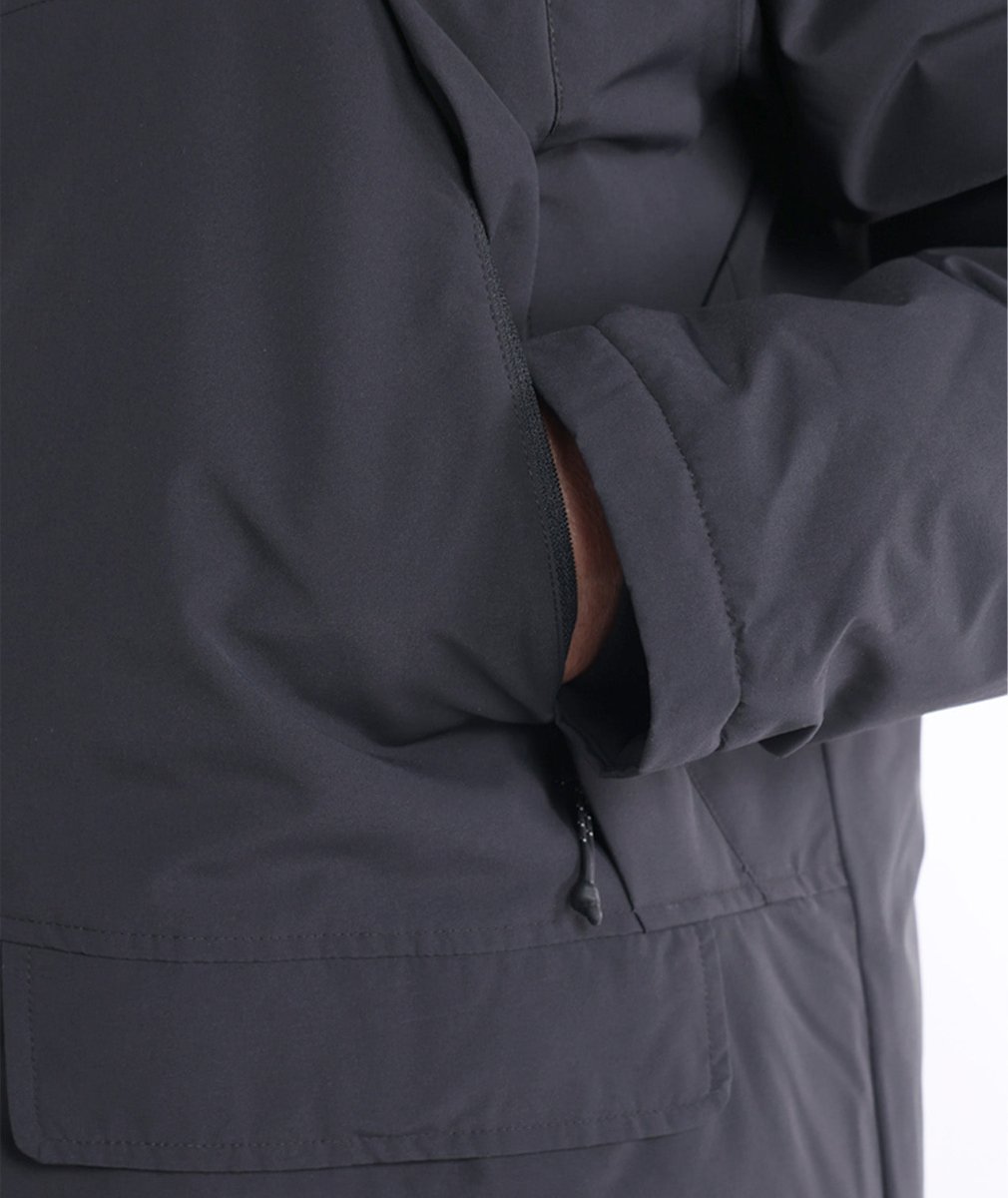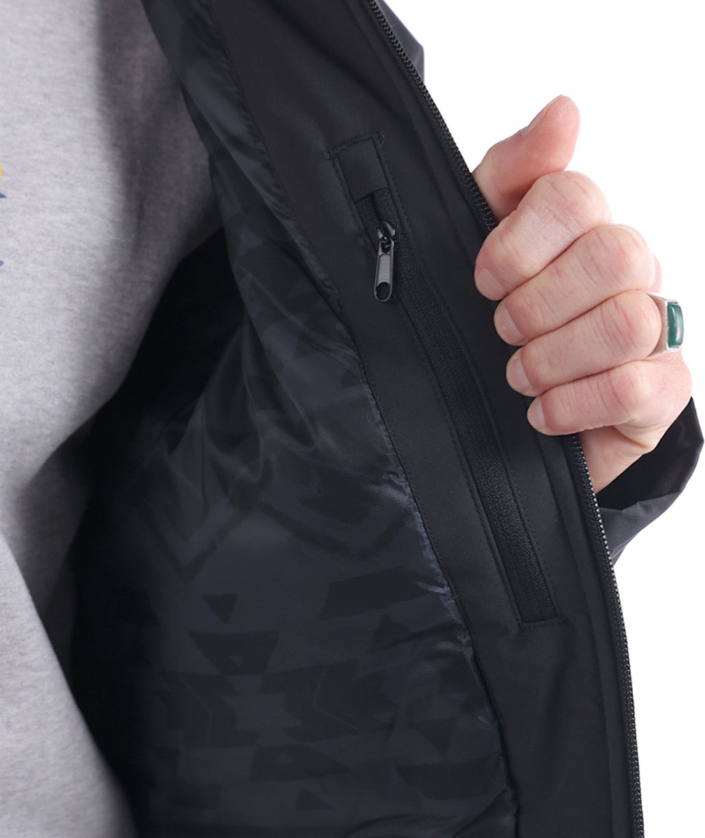 Hergestellt aus recyceltem Material, bietet sie optimalen Schutz dank ihrer laminierten Membran 5K/5K, die atmungsaktiv und wasserabweisend ist, ideal für leichte bis mäßige Regentage. Ihre warme Wattierung, das bedruckte Futter und die wasserdichten Nähte machen sie zu einer praktischen, modernen und umweltfreundlichen Jacke.