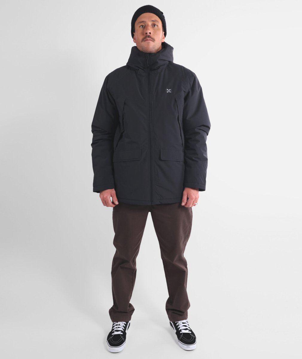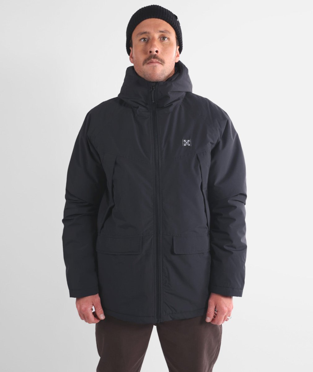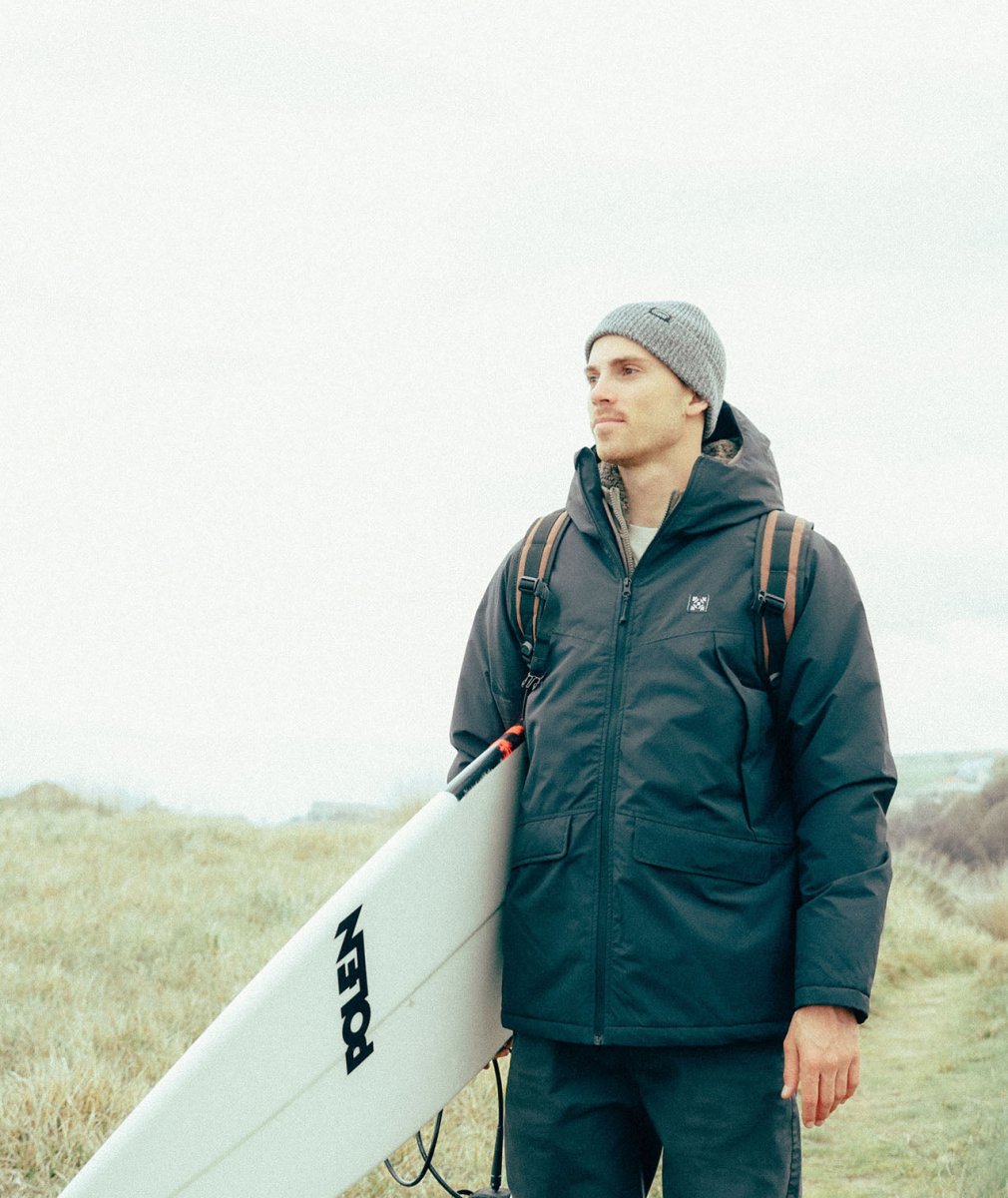 Hergestellt aus recyceltem Material, bietet sie optimalen Schutz dank ihrer laminierten Membran 5K/5K, die atmungsaktiv und wasserabweisend ist, ideal für leichte bis mäßige Regentage. Ihre warme Wattierung, das bedruckte Futter und die wasserdichten Nähte machen sie zu einer praktischen, modernen und umweltfreundlichen Jacke.