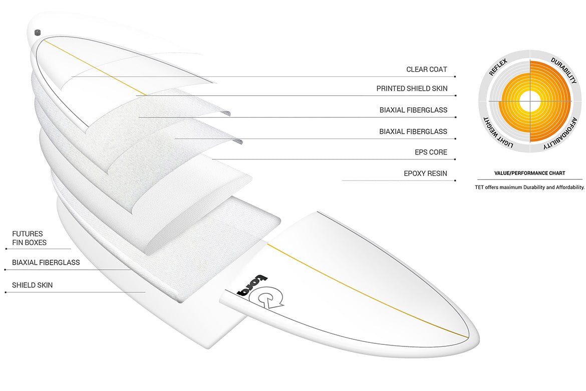 - Konstruktion: TET (Torq Epoxy Technology) – leicht, robust, langlebig