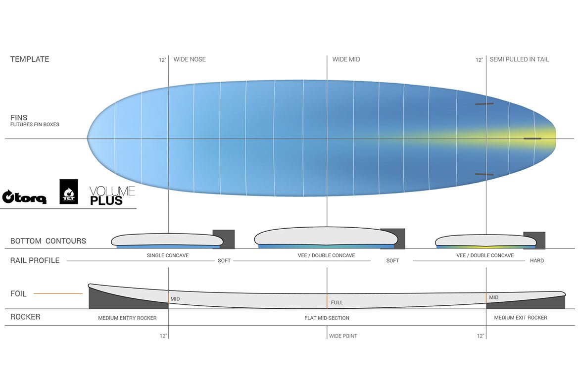 - Typ : Entwicklungsfähiges Surfbrett (Mid-Length)