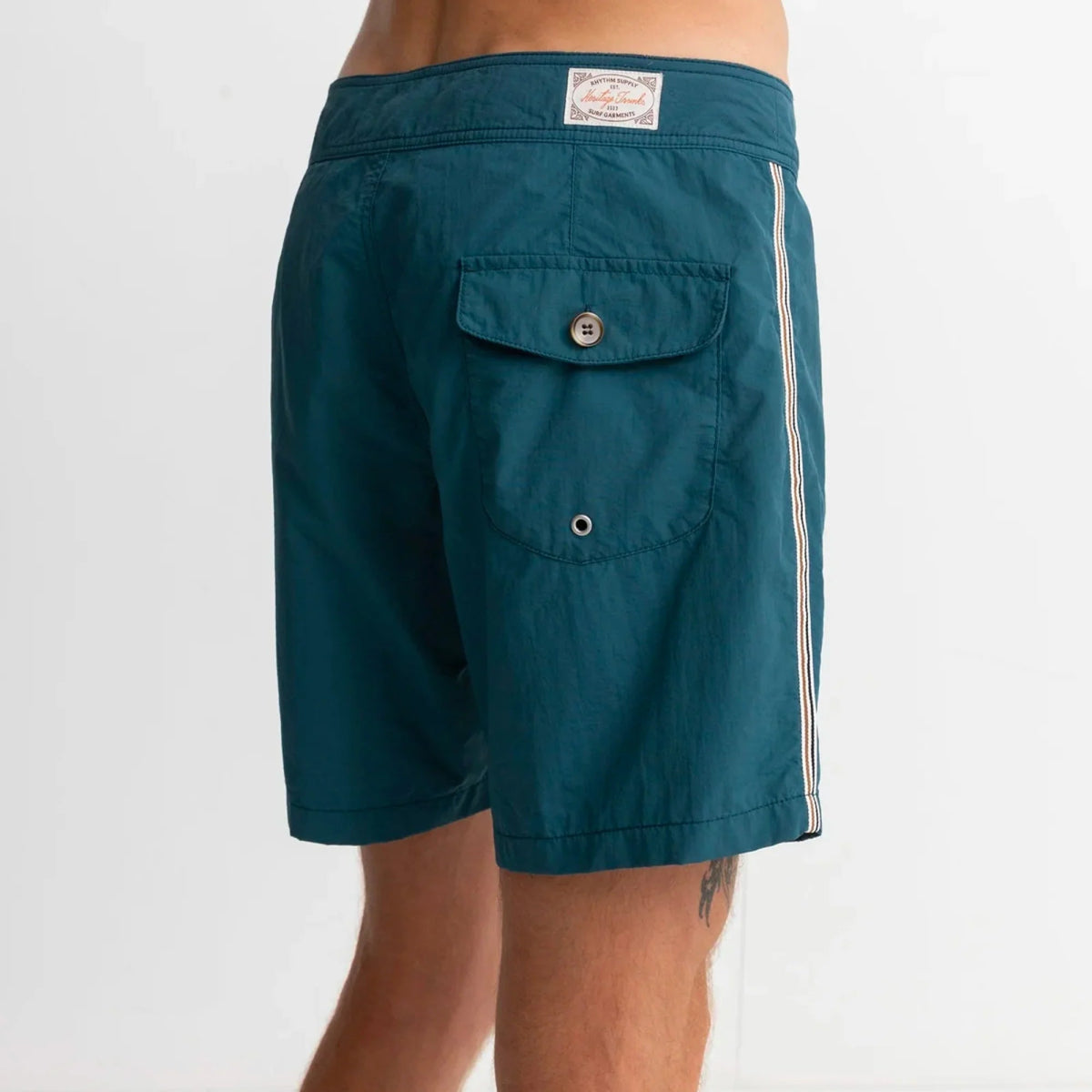 Inspiriert von den Wurzeln der Surf-Kultur, ist die Heritage Boardshort 16" in Teal ein zeitloses Modell von Rhythm. Hergestellt aus leichtem, schnelltrocknendem Nylon, vereint sie Haltbarkeit und Komfort für deine Sessions am Strand sowie im Alltag. Ihr klassischer Schnitt wird durch raffinierte Details wie dekore Streifen an den Seitennähten und einen gepolsterten Wildlederbund für optimalen Halt ergänzt.