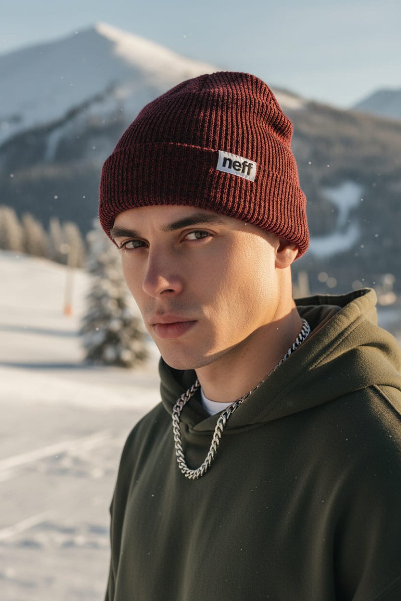 The NEFF Fold Heather beanie combines classic style, soft knit, comfortable material, heathered texture, folded cuff, everyday comfort, and winter versatility. Its heather finish adds a subtle textured effect, perfect for a modern look while keeping the warmth and simplicity of basic NEFF beanies.