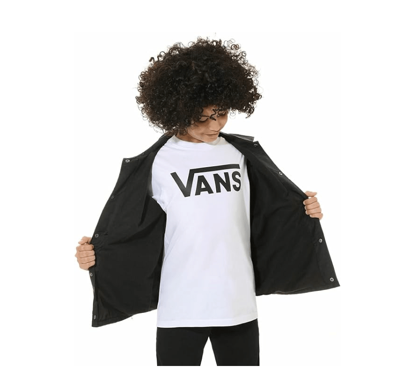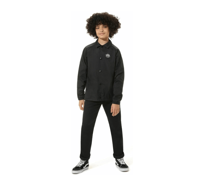 La Vans Boy's Torrey Jacket est une veste coach résistante à l’eau, idéale pour les enfants actifs et les sorties sous un temps changeant. Conçue avec une coque en nylon 100% et une doublure en polyester 100%, elle combine légereté, durabilité et confort. Les pressions à l’avant facilitent l’enfilage et le retrait, tandis que les poche fendues latérales offrent un espace pratique pour garder les mains au chaud ou ranger de petits objets. Le logo imprimé sur la poitrine gauche ajoute une touche authentique Vans pour un style urbain et sportif.