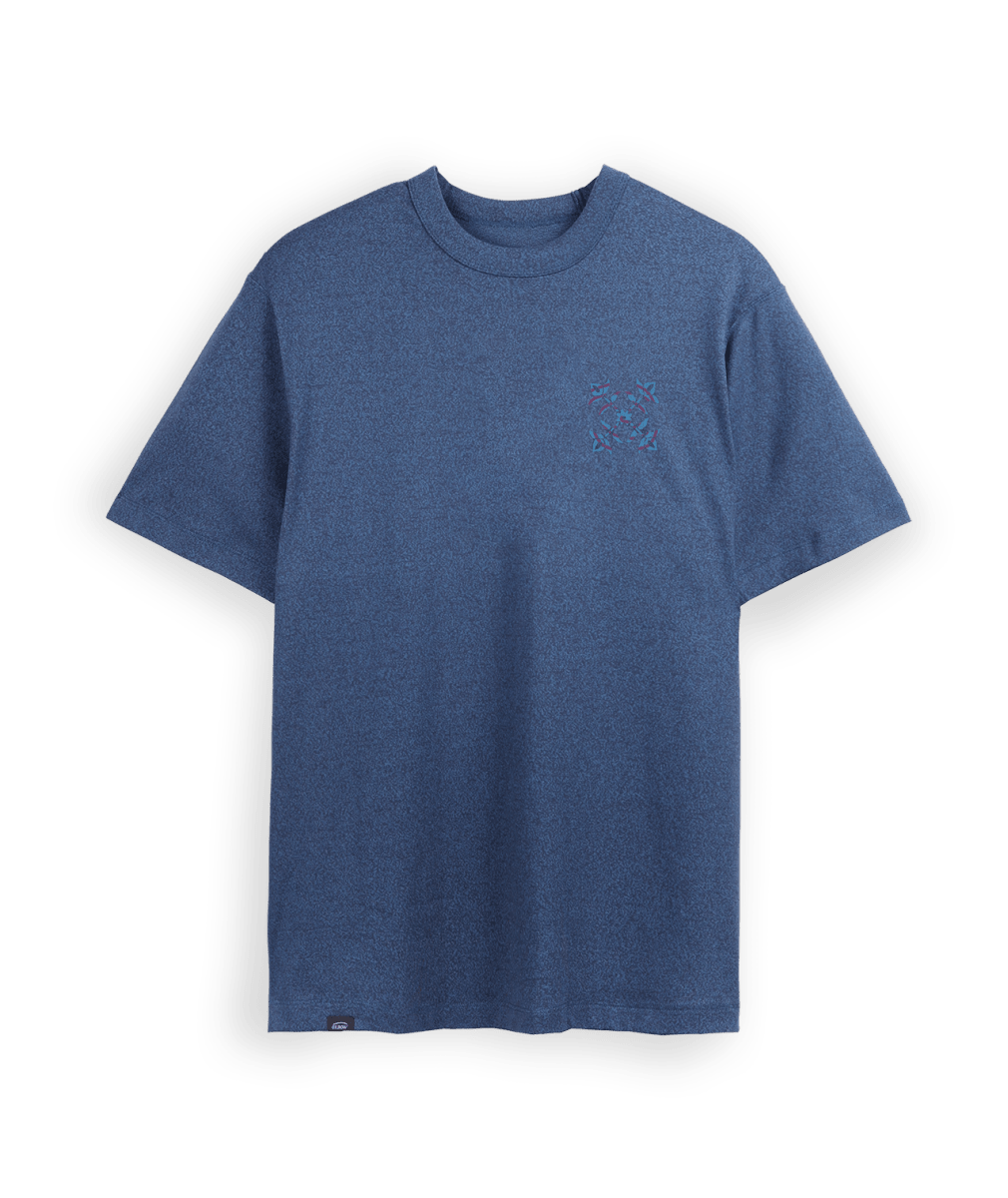 Confeccionada en un mezcla de algodón orgánico y poliéster reciclado, esta camiseta se distingue por su material jaspeado 240 g/m², que aporta textura, carácter y durabilidad. Su corte suelto y cómodo crea una silueta contemporánea, perfecta para un look lifestyle o streetwear.