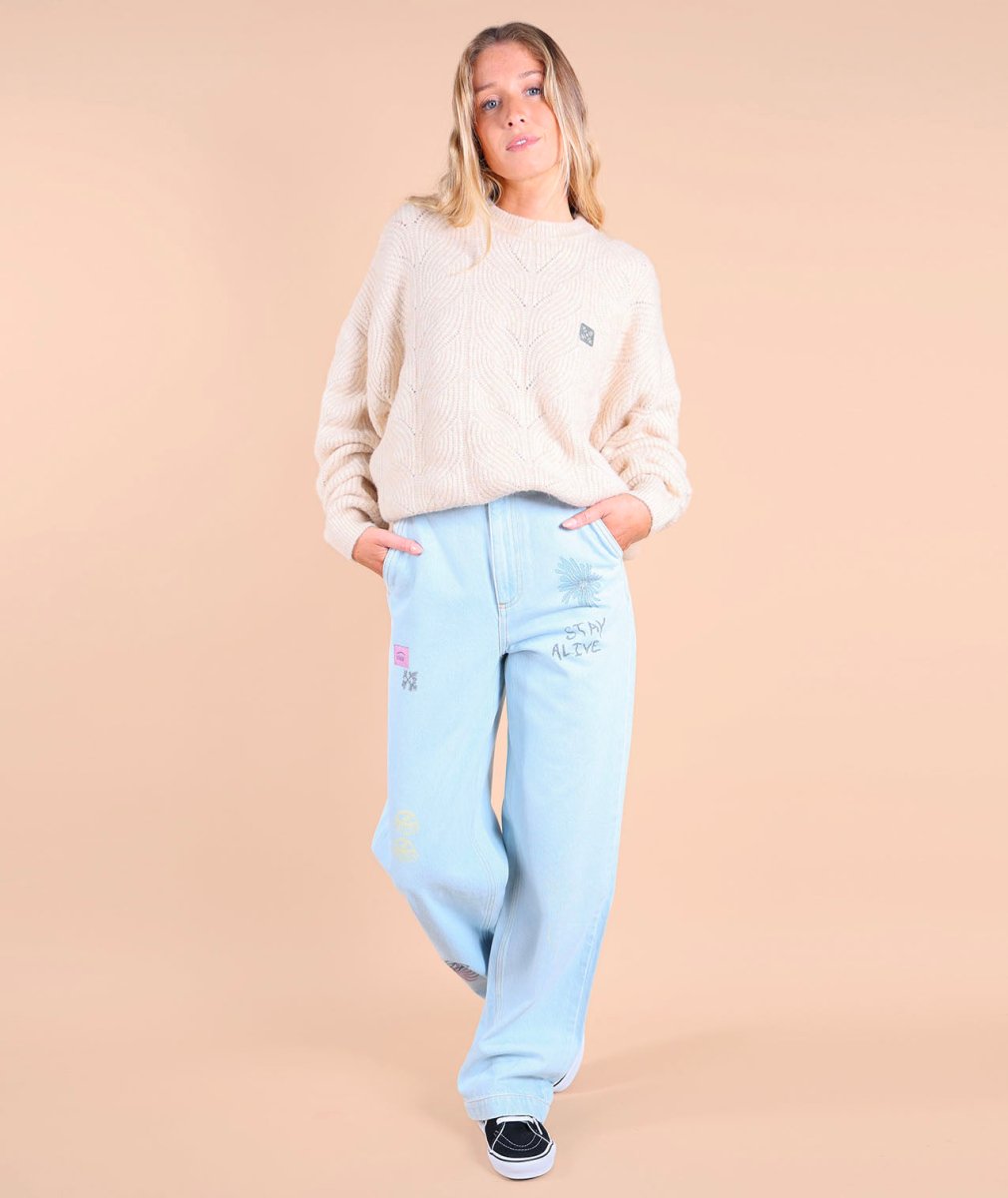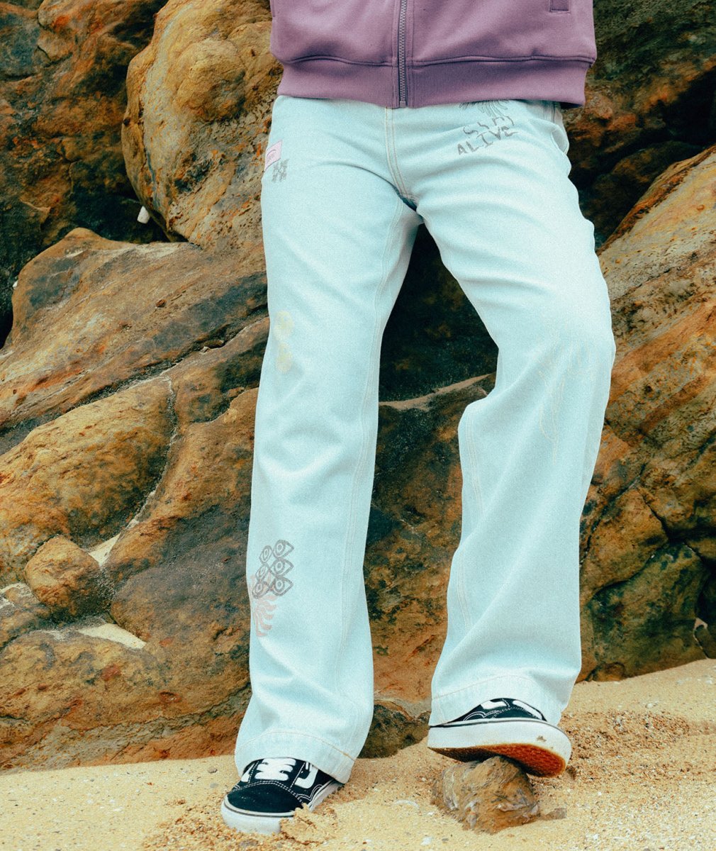 Confeccionado en 100% algodón de alta calidad, revisita el imprescindible jean de 5 bolsillos gracias a unos paneles de sarga y una impresión gráfica original. Su corte versátil y su look cuidado lo convierten en una pieza perfecta para crear conjuntos de moda en todas las estaciones.