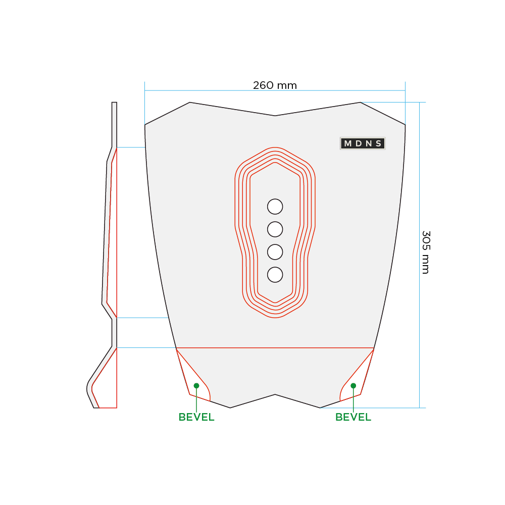 De Tractions Pad Junior van MDNS is ontworpen door surfers om maximale grip te bieden. Compatibel met alle soorten boards, garandeert deze pad meer radicale sessies en betere controle tijdens het surfen op de achtervoet. Het ontwerp in 1 stuk omvat een Bump Kick en een arch bar in honingraatpatroon voor een beter gevoel onder de voet. Bovendien maakt het gebruik van groene 3M-lijm en milieuvriendelijk verpakkingsmateriaal.