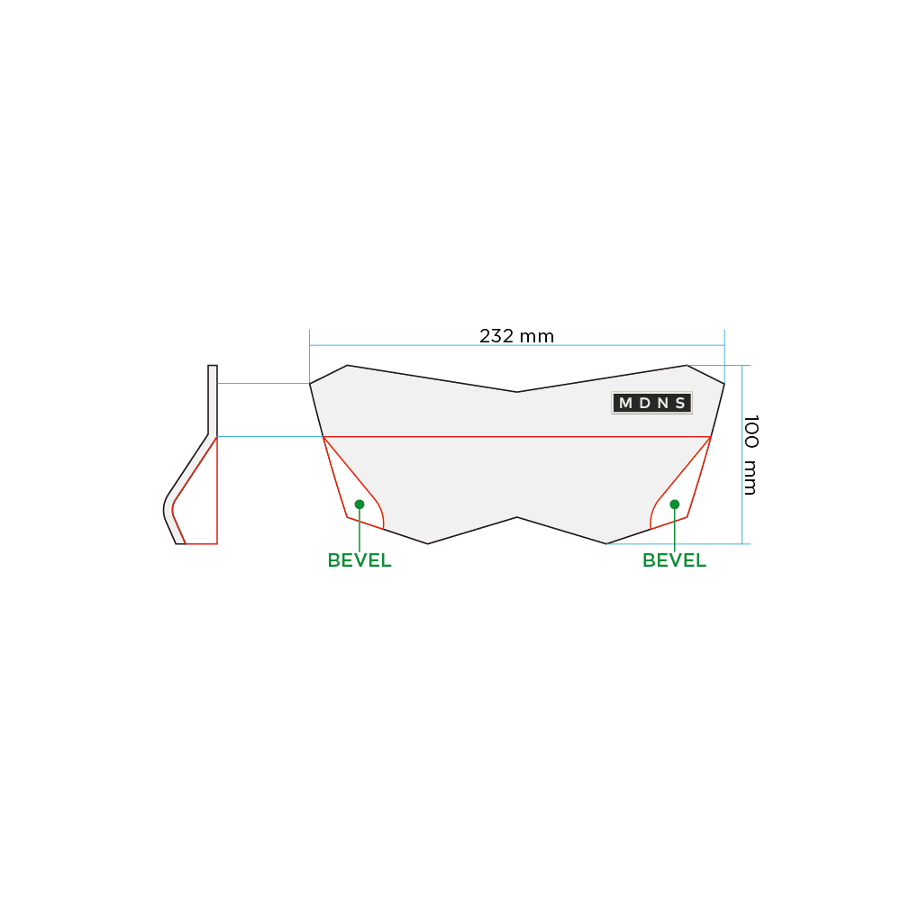 - Afgeschuinde Staart : Afgeschuinde achterkant voor betere ondersteuning en controle