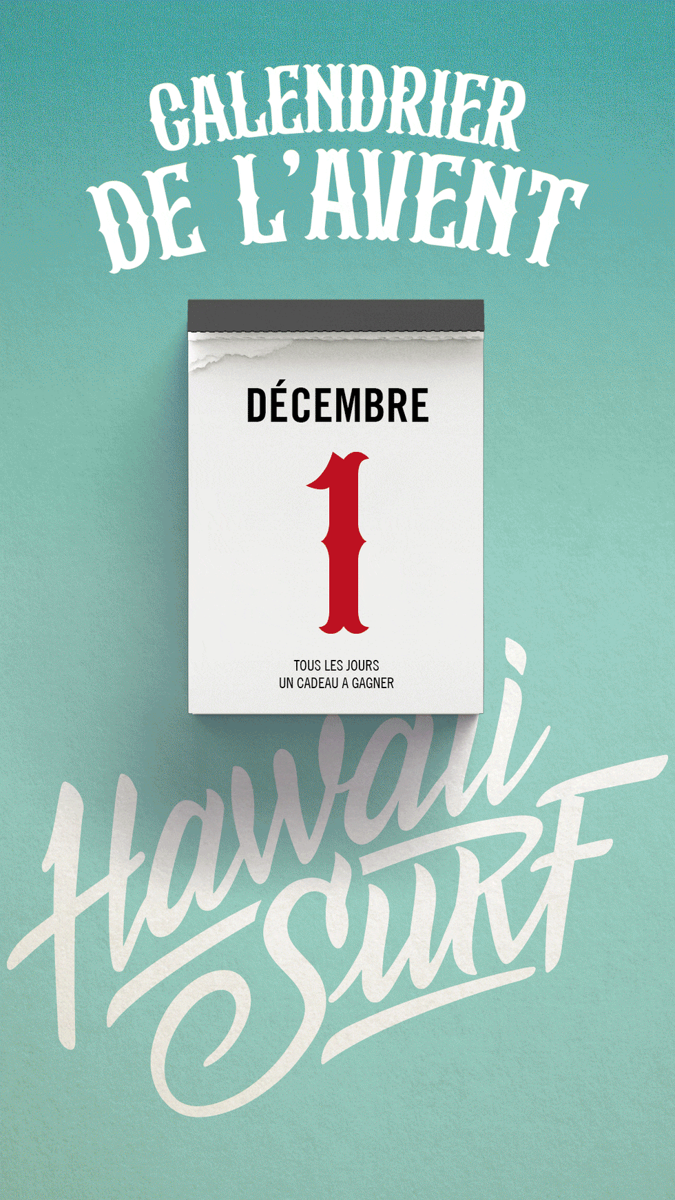 Vanaf 100 € aan aankopen komt uw naam automatisch op de lijst van de HawaiiSurf Adventskalender.