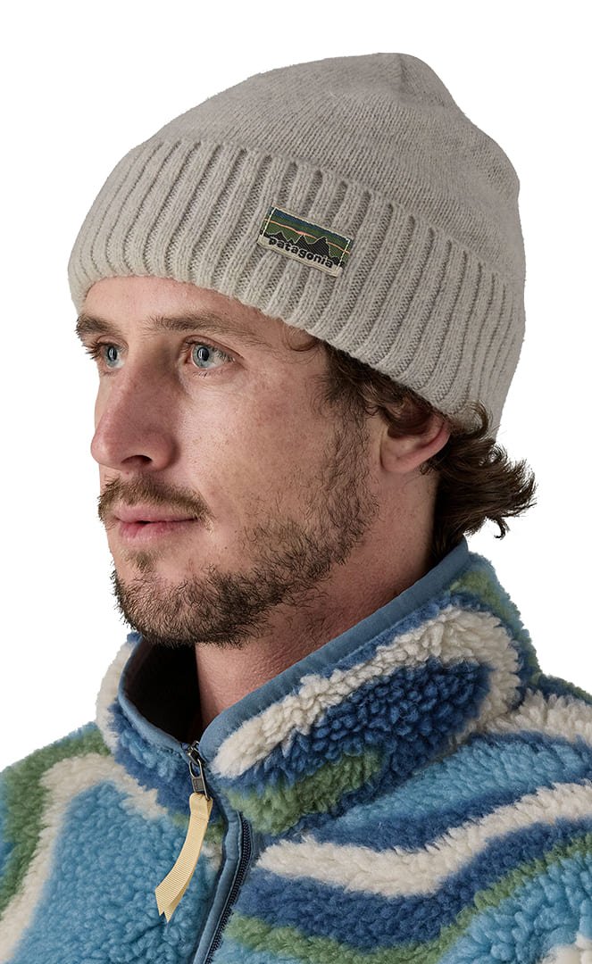 Découvrez le Brodeo Beanie, un bonnet classique avec revers, alliant chaleur et confort grâce à un mélange de laine recyclée et nylon recyclé par la marque Patagonia !