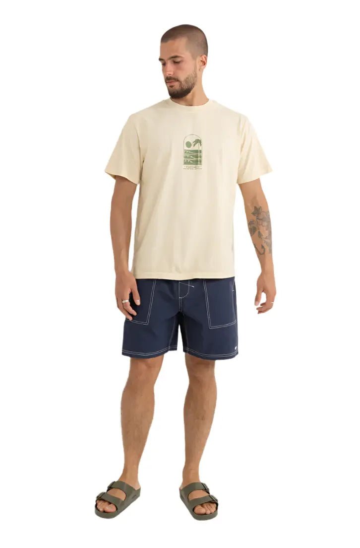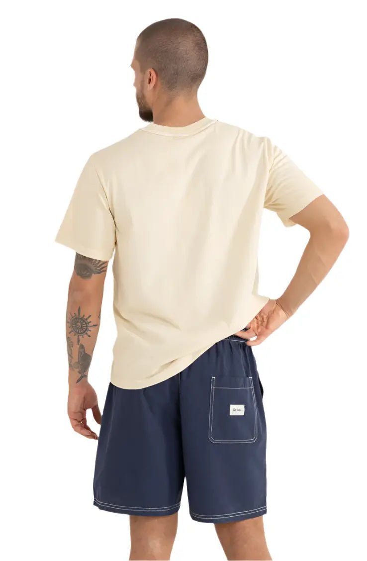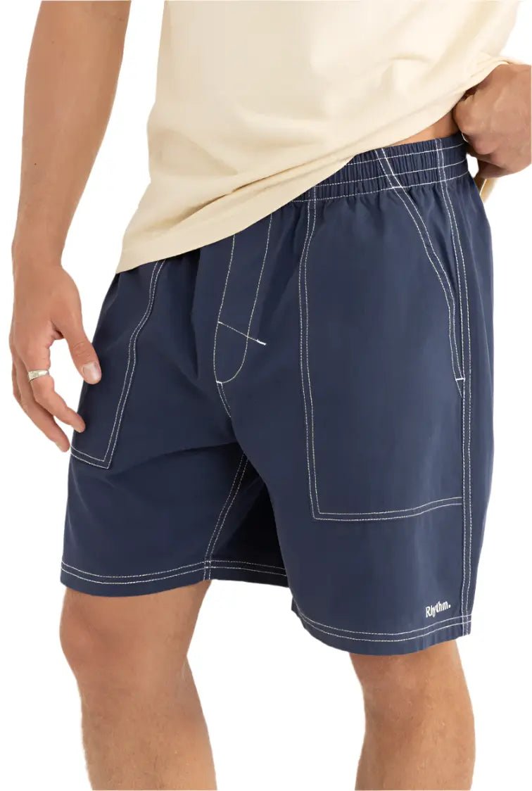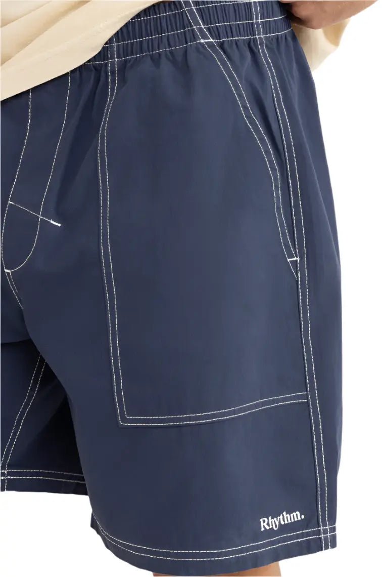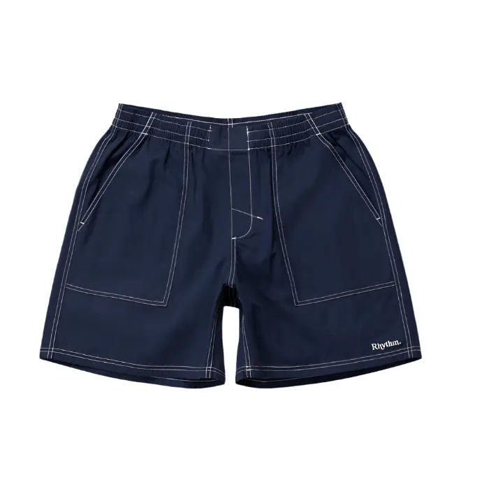 Le Nylon Fatigue Jam en coloris Navy est conçu pour les esprits aventureux. Fabriqué dans un mélange 65 % nylon et 35 % coton, ce short allie durabilité et confort grâce à sa texture légère et sa coupe décontractée. Avec sa longueur de jambe de 48 cm / 19 in, sa taille élastiquée et son cordon de serrage, il est idéal pour les journées actives, que ce soit en bord de mer ou en exploration urbaine.