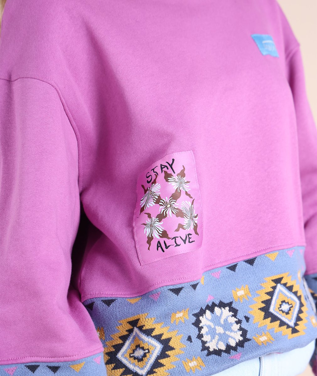 Avec son jacquard artwork intégré au corps, au col et aux manches, ainsi que son étiquette tissée sur le côté, ce sweat se distingue par son design unique et travaillé. Son grammage de 300gsm garantit une matière épaisse et résistante, idéale pour une utilisation quotidienne. Disponible en couleur Mulberry, il apporte une touche moderne et élégante à toutes tes tenues.